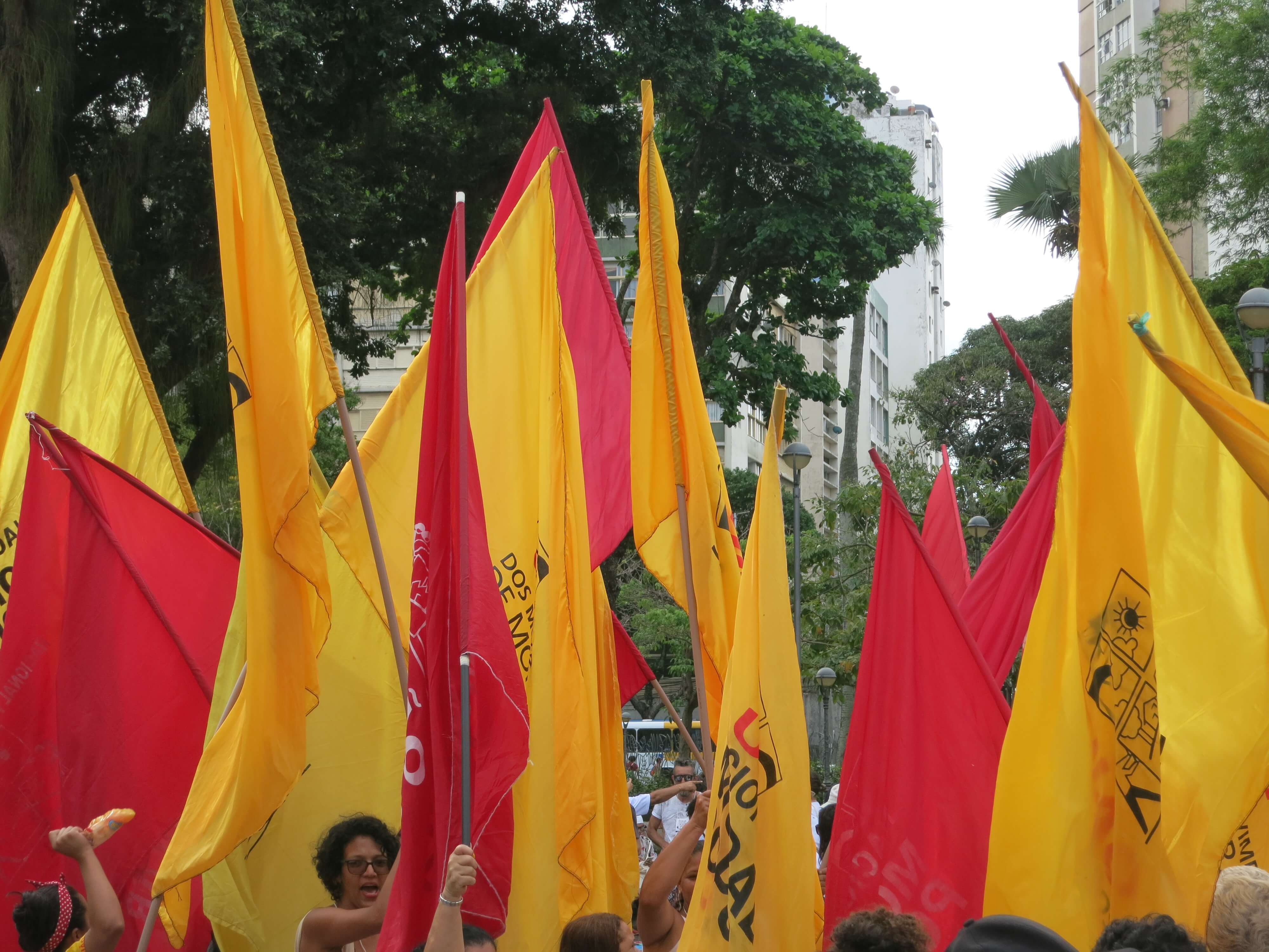 - Tausende gehen an der Eröffnungsdemo des WSF für eine andere Welt auf die Strasse. Die Stimmung ist laut und fröhlich, Fahnen in allen Farben leuchten in den Strassen Salvadors. Bunt und vielfältig muss der Wandel sein. (Bild: Daniel Hostettler/Fastenopfer)